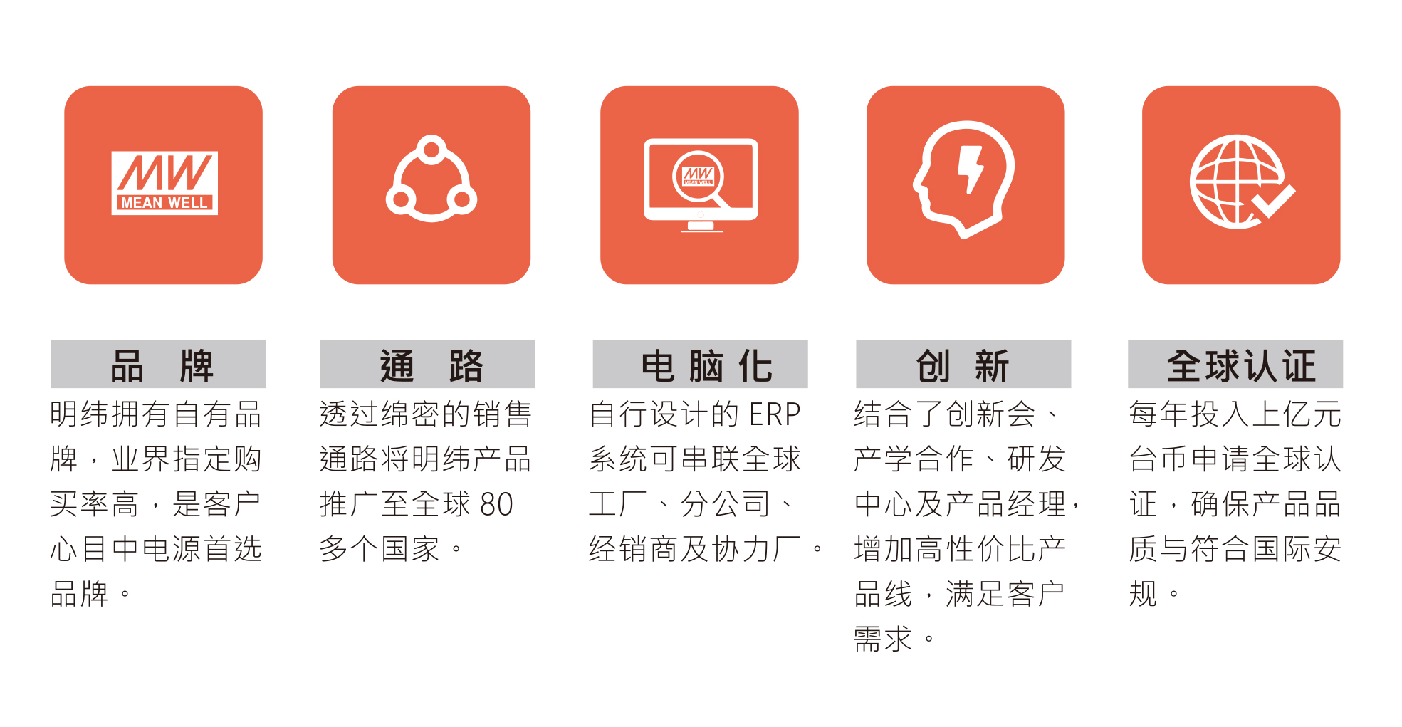 明緯秉持「您信賴的電源伙伴」的理念,堅持提供最優(yōu)質(zhì)的電源產(chǎn)品與服務(wù)。經(jīng)過多年的努力與耕耘,明緯已建構(gòu)起全球經(jīng)銷通路網(wǎng)絡(luò),能快速提供全球在地化服務(wù)。