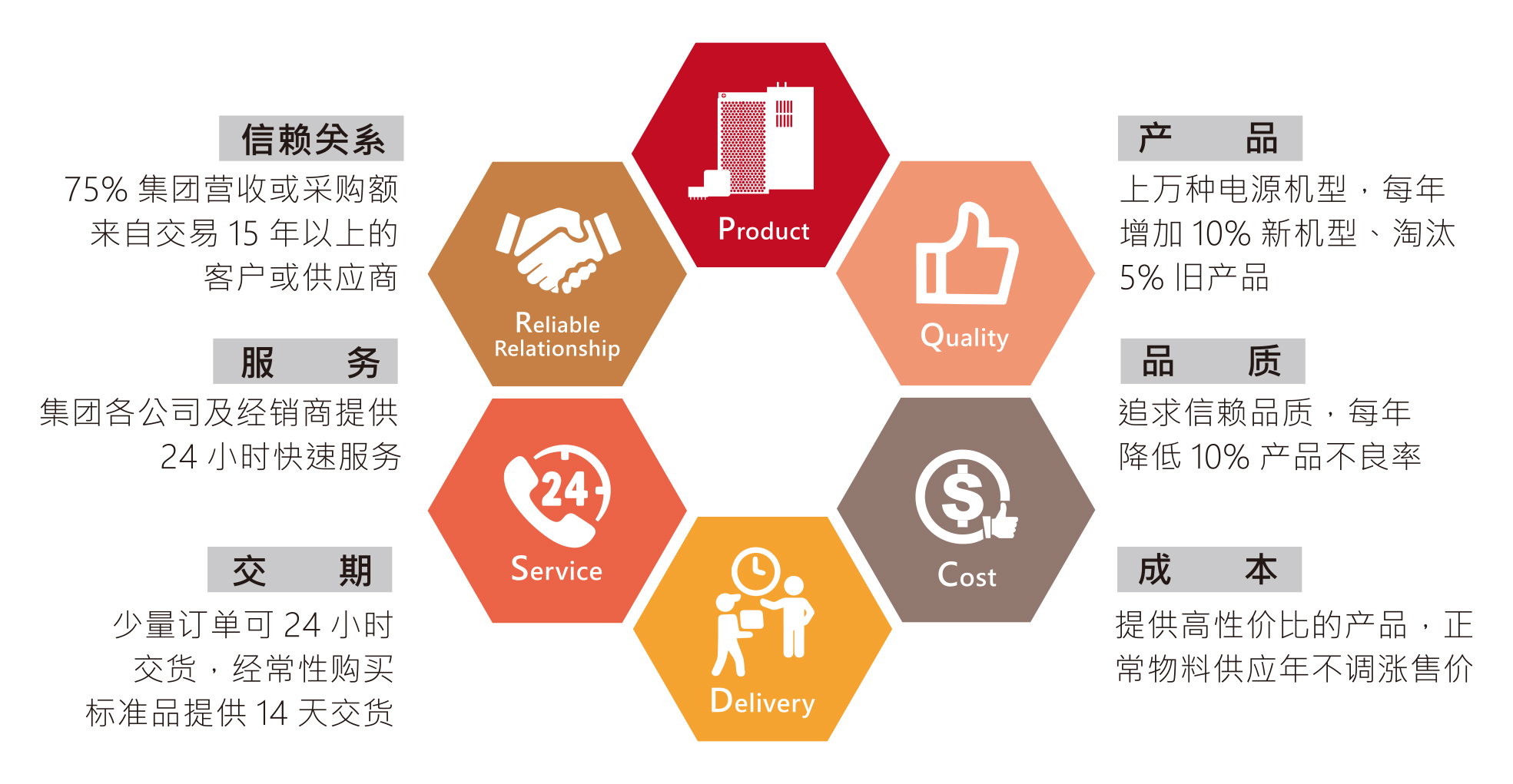 - 提供客戶/經(jīng)銷商一次購足的電源解決方案(One Stop Shopping & Total solution)