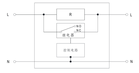 ICL-16的線路方塊圖如圖一所示,是由三個方塊所組成,方塊一是水泥電阻R,這排除了負溫度系數(shù)熱敏電阻會因溫度上升降低阻值的問題。方塊二是繼電器,其作用是將水泥電阻短路,減少損耗。至于繼電器什么時候要短路,就是由方塊三控制電路來決定。