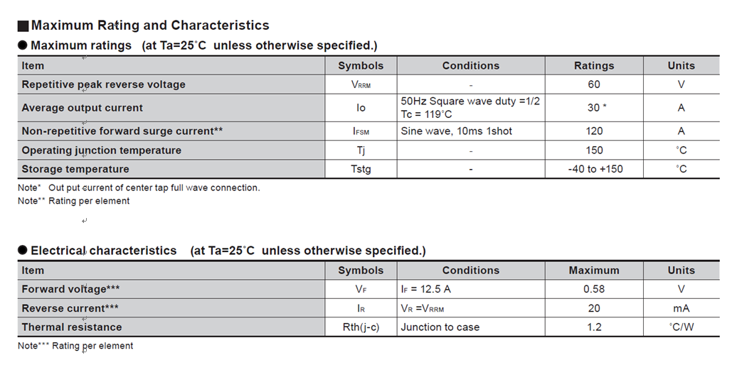 - 如圖二中耐壓VRRM要大于電源輸出電壓,以防止電壓逆灌。