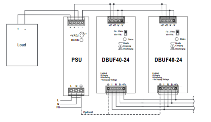 緩衝模組與不斷電系統(tǒng)有諸多差異,如表一。由於緩衝模組內(nèi)部是由電容組成,因此,有著小型化、低成本且免維護(hù)等優(yōu)點(diǎn)。此外,UPS有毫秒級的反應(yīng)時(shí)間,相較之下,緩衝模組則無此問題。緩衝模組內(nèi)部電容與電源輸出端採直接並聯(lián)的形式如圖三,當(dāng)電源輸出失效時(shí),緩衝模組內(nèi)的電容可即時(shí)供電,讓客戶有足夠時(shí)間進(jìn)行資料儲存。緩衝模組特別適用在資料處理相關(guān)設(shè)備,或者工業(yè)電腦供電設(shè)備。倘若終端設(shè)備負(fù)載量較大,或需較多時(shí)間儲存資料時(shí),緩衝模組亦能並聯(lián)使用,如圖四。