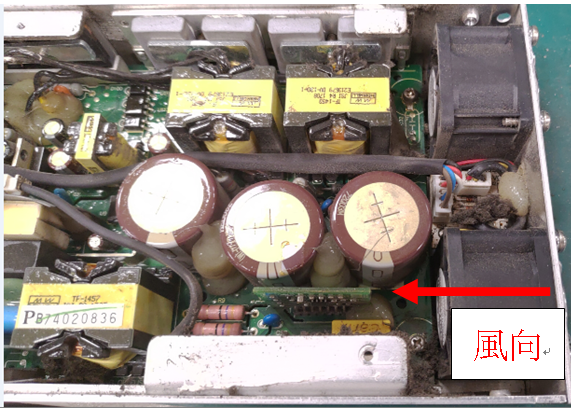 靠近風(fēng)扇附近零件面對風(fēng)向的迎風(fēng)面也很容易卡灰塵造成散熱不足,如再吸收到空氣中的濕氣,將更容易造成零件耐壓降低或跳火而短路。