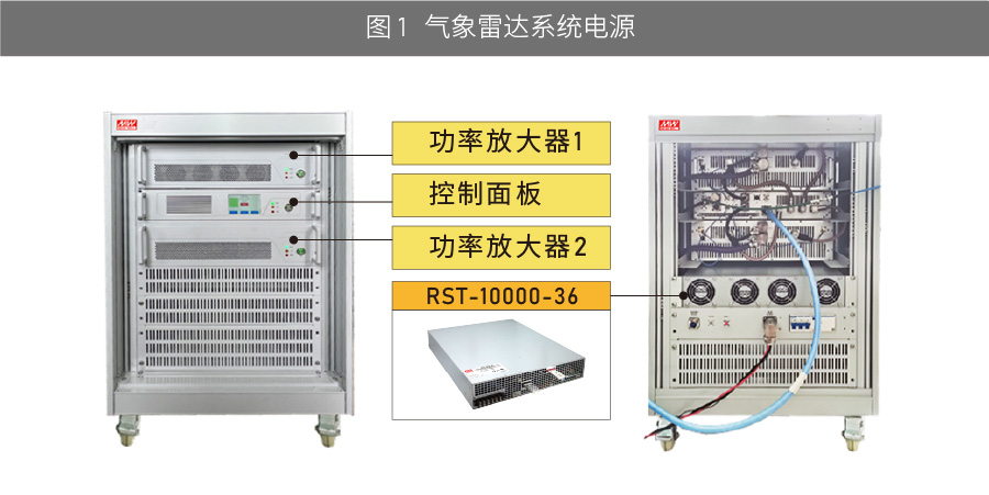 如下圖 1 為氣象雷達(dá)系統(tǒng)電源應(yīng)用,負(fù)載為射頻功率放大器。使用明緯 RST-10000-36 + 15U 機(jī)柜,組合成一套完整氣象雷達(dá)系統(tǒng)電源,采用模擬警報(bào)訊號(hào),以監(jiān)控電源工作狀態(tài)。